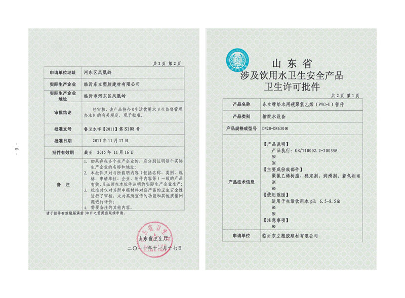 山東省涉及飲用水衛(wèi)生安全產(chǎn)品衛(wèi)